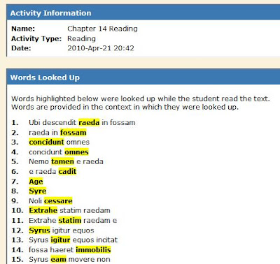 One of my favorite digital suppliers, Laura Gibbs (bestiaria Latin blog) addressed the idea of using an online dictionary called nodictionaries.com to read Latin about a year ago http://bestlatin.blogspot.com/2009/06/nodictionariescom.html and inspired me to look at how to use the site in my teaching. If you've never heard of nodictionaries, you should read that blog post up there and get an idea of what it does. Anything you teach has a similar site out there doing work for students.